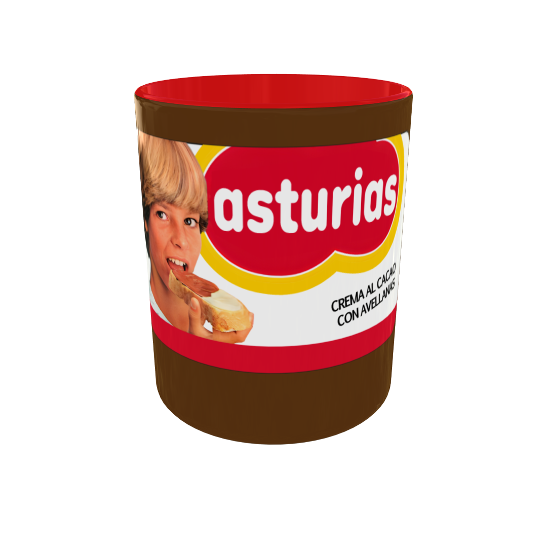La Taza “Asturias Cacao” reinterpreta el mítico tarro de crema de cacao con avellanas, un icono de muchas meriendas de la infancia. Un diseño dulce, nostálgico y perfecto para amantes del sabor asturiano de siempre.