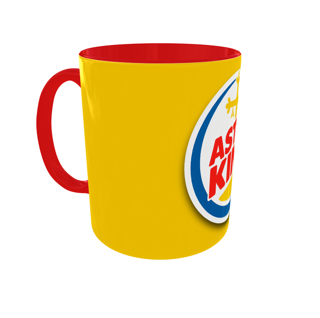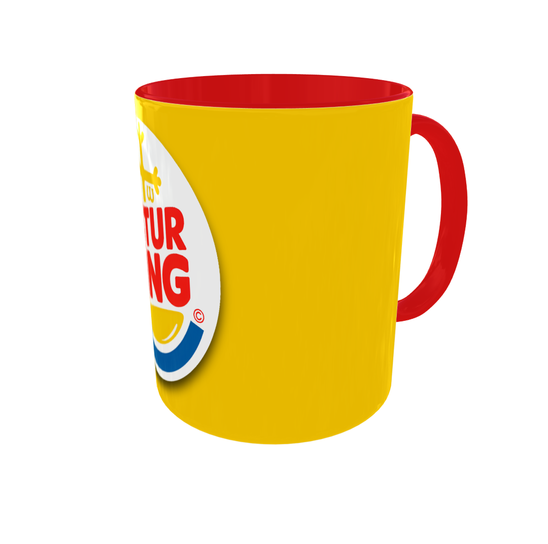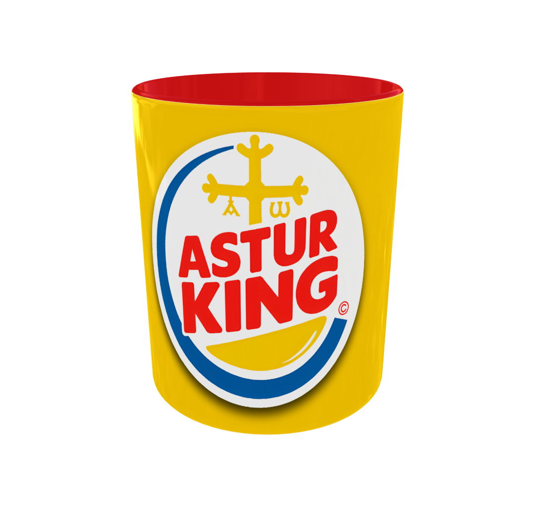 La Taza Astur King reimagina el icónico estilo fast-food en versión 100% asturiana, mezclando humor, identidad local y un diseño lleno de color. Su estética pop en amarillo, rojo y azul convierte este diseño en una pieza atrevida, divertida y perfecta para amantes de la tierrina y del buen cachondeo astur.